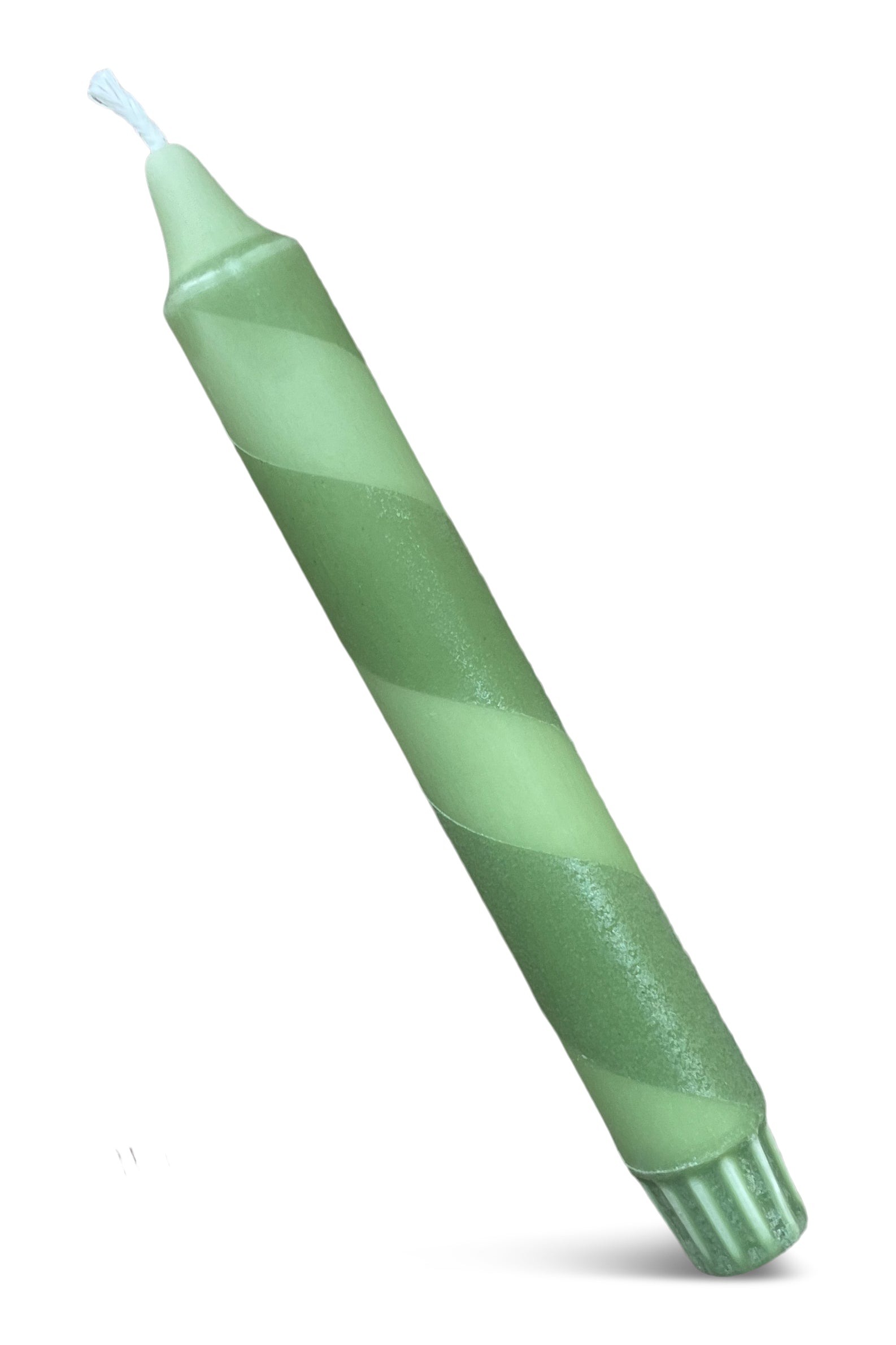 Breng een natuurlijke, stijlvolle flair in je interieur met deze prachtige swirl dinerkaars in de elegante kleur olijfgroen. De subtiele wervelingen in het ontwerp geven een unieke twist, terwijl de diepe, warme tint van olijfgroen perfect past bij zowel moderne als rustieke tafelsettings.