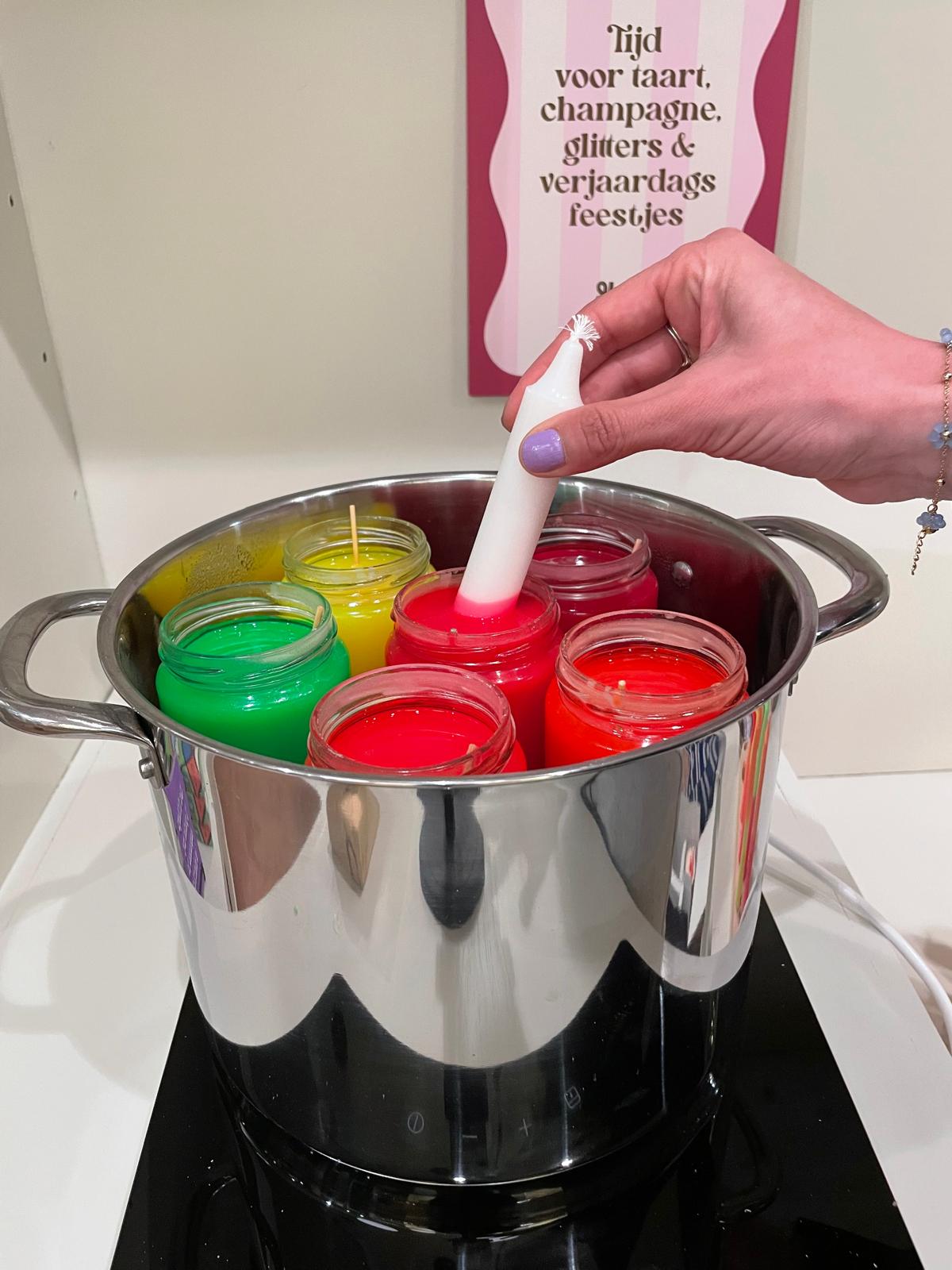 🧡 een grote pan met 6 potjes met stearine (neon- of pastelkleuren)